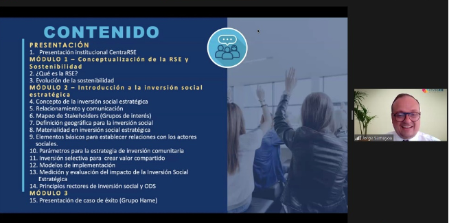 El taller sobre inversión estratégica fue desarrollado por Jorge Samayoa, Gerente de Proyectos, y contó con un caso de éxito de Grupo Hame; y se enfocó en la creación de valor compartido, un concepto que busca alinear los objetivos empresariales con el bienestar social y ambiental. Los participantes aprendieron sobre diferentes herramientas y metodologías para evaluar y seleccionar proyectos de inversión que generen beneficios tanto para la empresa como para la comunidad.